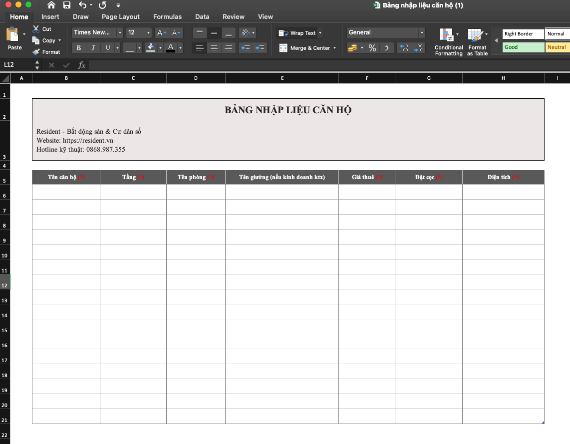 Bước 4: Mở file mẫu và điền dữ liệu kiosk theo các trường thông tin hệ thống yêu cầu nhập. Lưu ý: