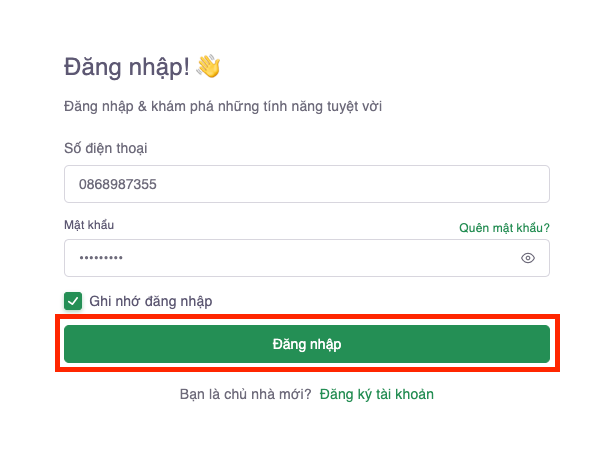 Bước 2: Điền Số điện thoại và mật khẩu. → Sau đó ấn Đăng nhập
