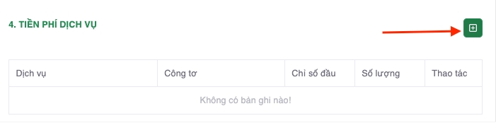 Tại phần thông tin Tiền phí dịch vụ ấn chọn icon Thêm dịch vụ.