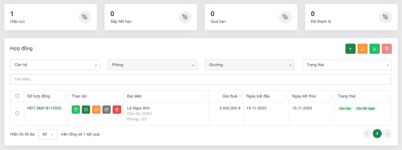 Trên đây là hướng dẫn một số thao tác tại màn Hợp đồng thuê. Mọi thắc mắc xin liên hệ ngay tới hotline 0355.430.074 hoặc gửi về email: [email protected] để được tư vấn và giải đáp. Chúc các bạn thành công!